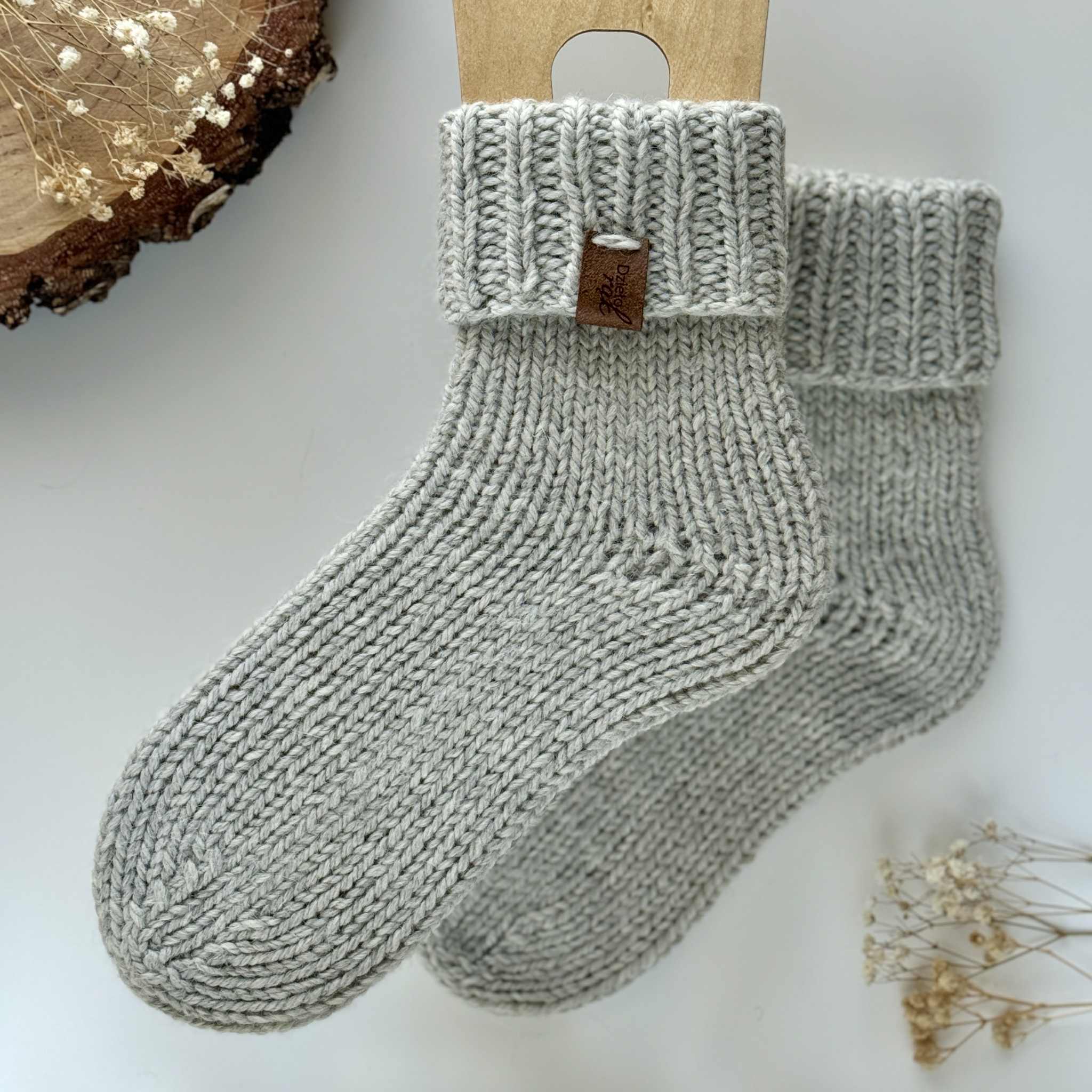 Grube skarpety wełniane – model klasyczny – kolor jasny szary